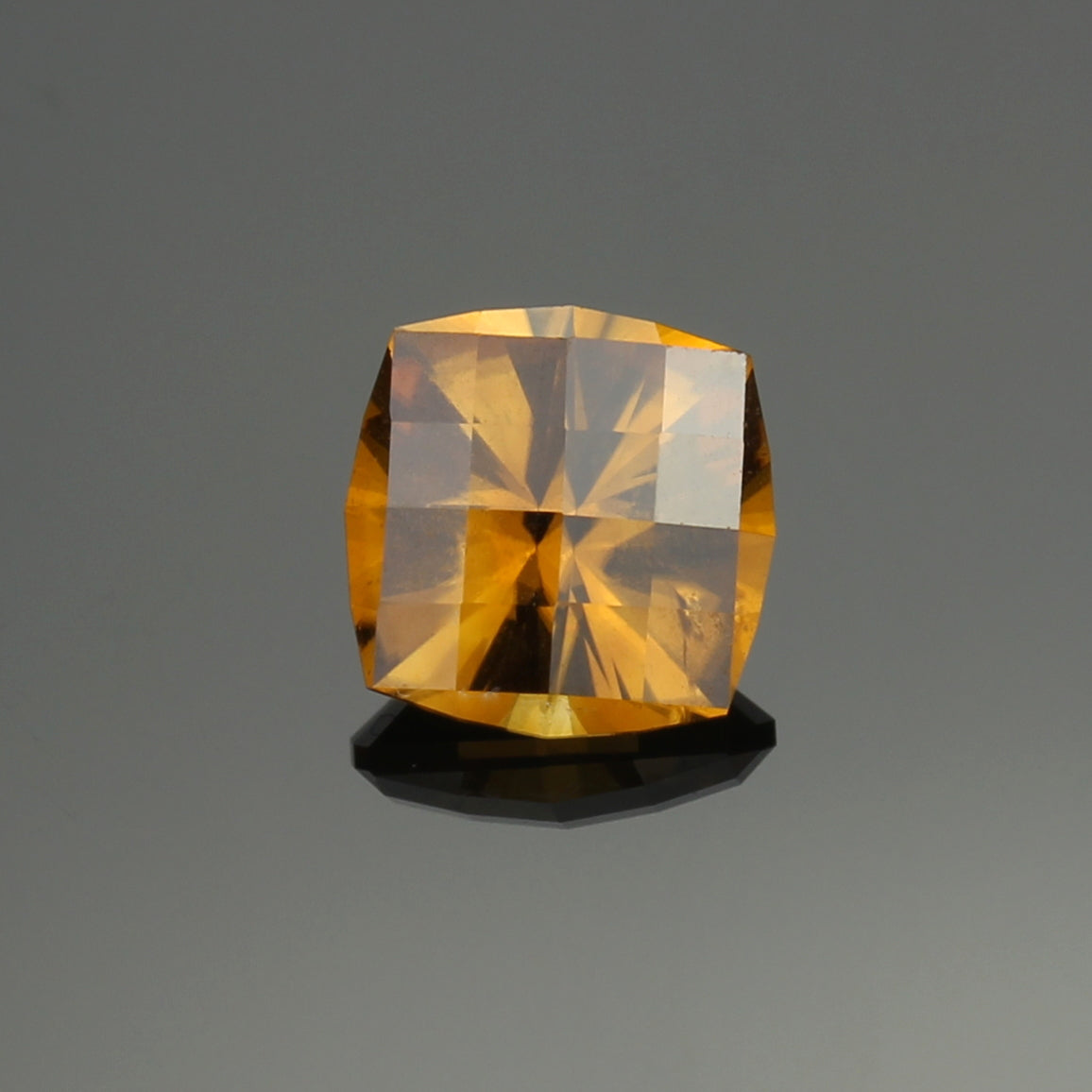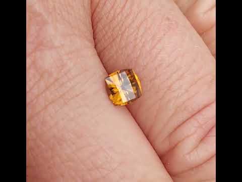 Cute sparkly brown zircon in a square cushion with a checkerboard crown. I dug this one myself in Central Queensland when I was younger.