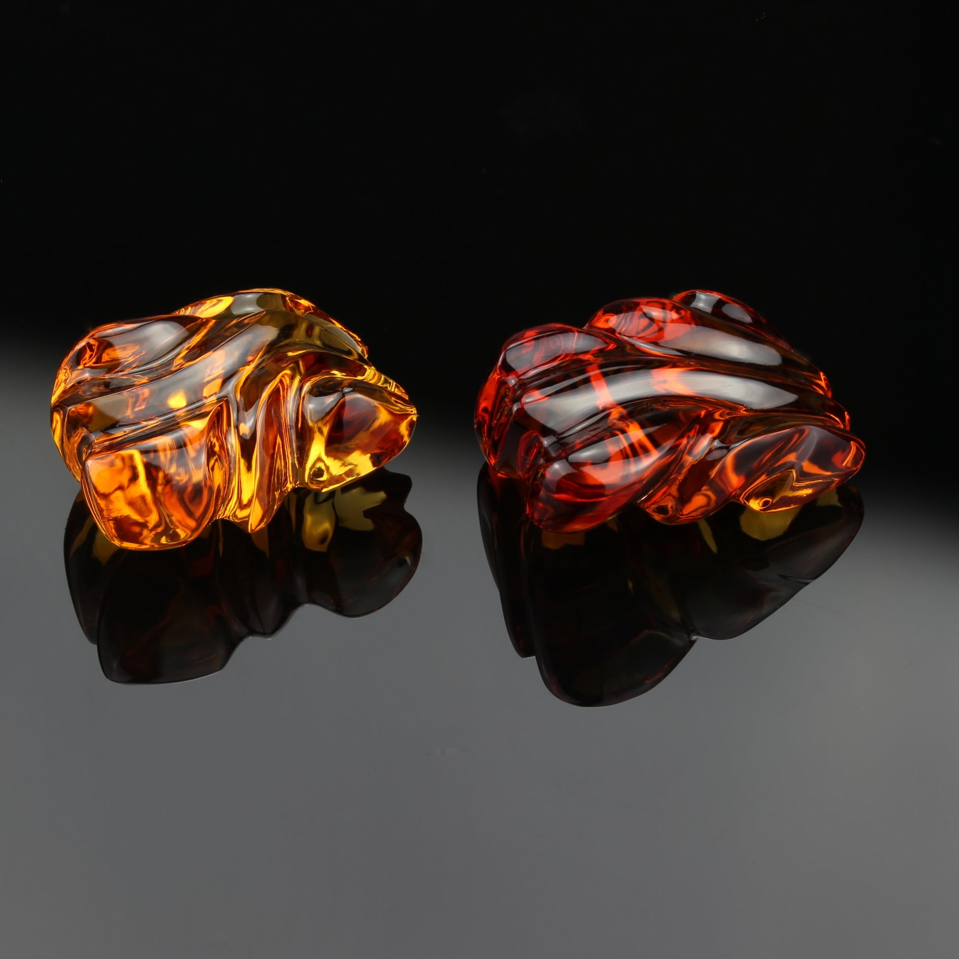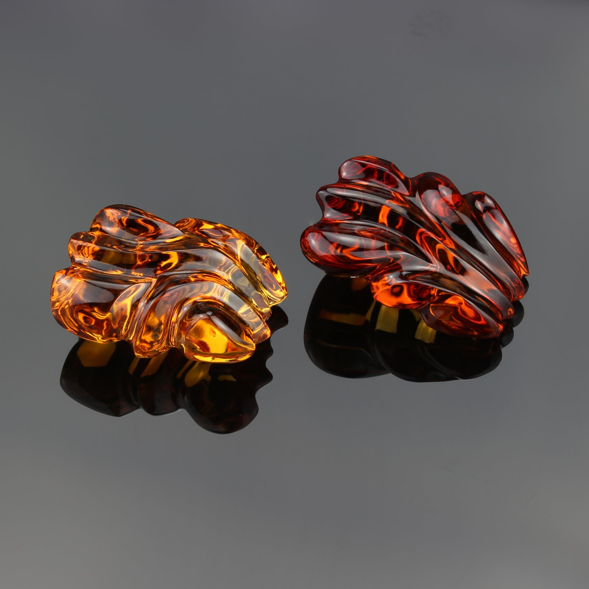 Stunning set of carved citrine gemstones. These are based on the same design and so have a very similar appearance and size. I am not quite sure whether to call them a set or a pair because whilst their colour is matched from the back from the front they definitely show a difference. Would be great for a jeweller who does not mind this kind of variation. I would also be happy to split them up so if you would like just one feel free to message me.