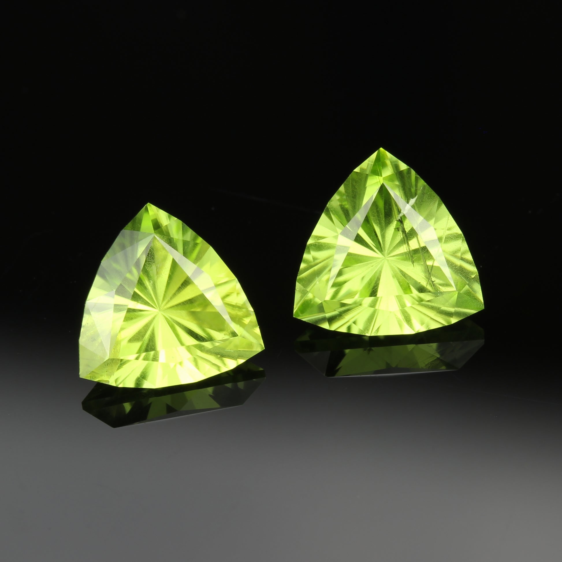 This apple green pair for peridot gemstones are cut in one of my favourite designs - Signature 4 by Jeff Graham. Would make a really unique pair of earrings.