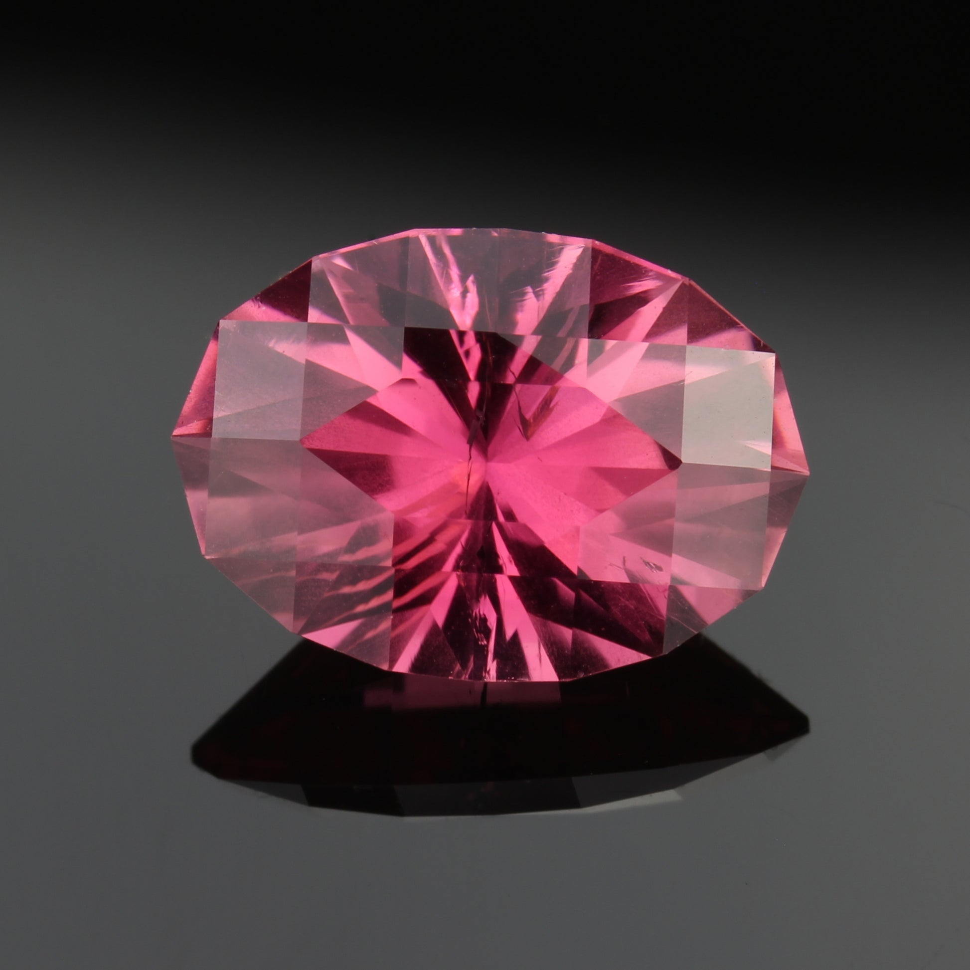 Really top colour Zambian pink tourmaline with a checkerboard crown.