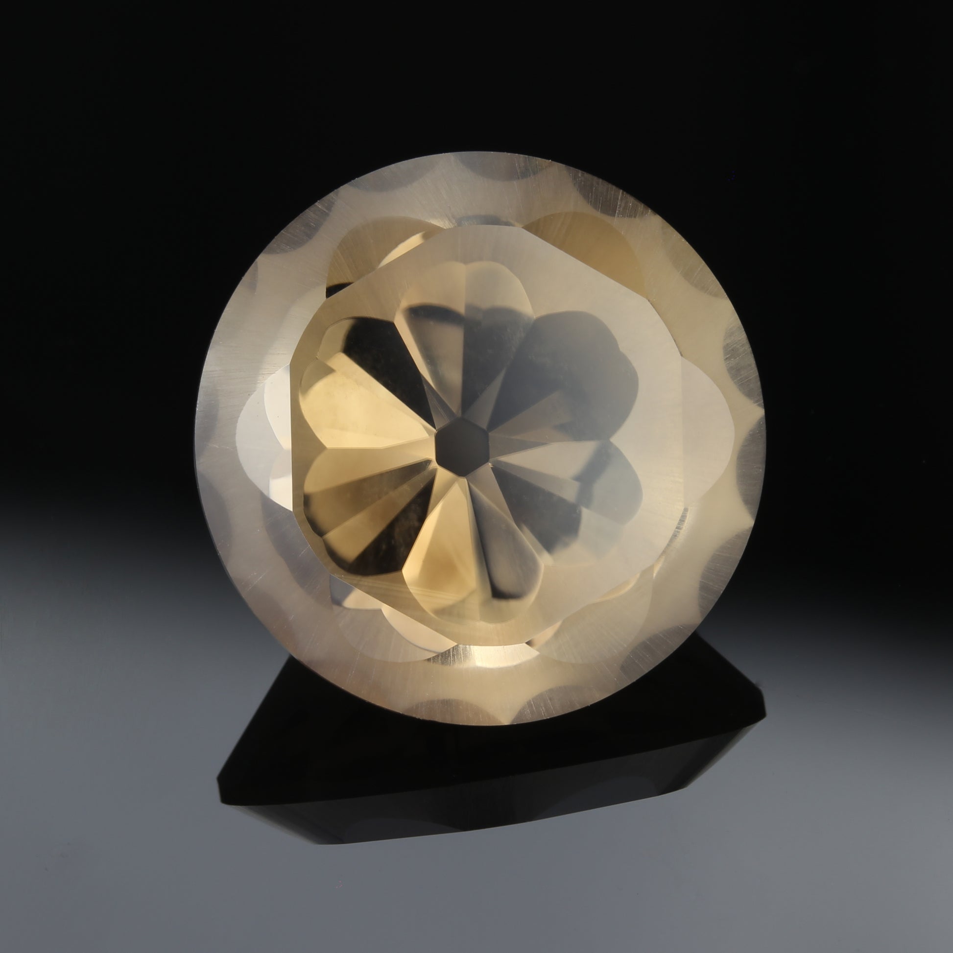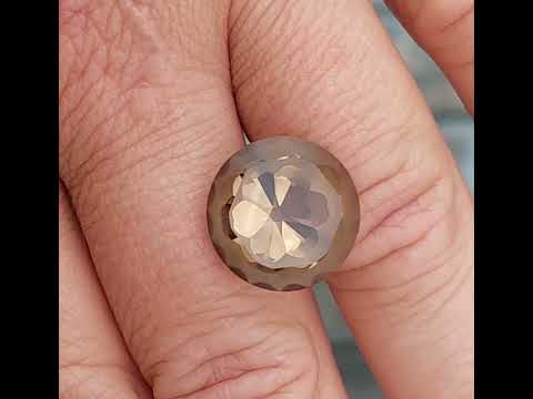 With both frosted and polished facets this large smokey quartz shows a large petalled flower in both the pavilion and crown design.
