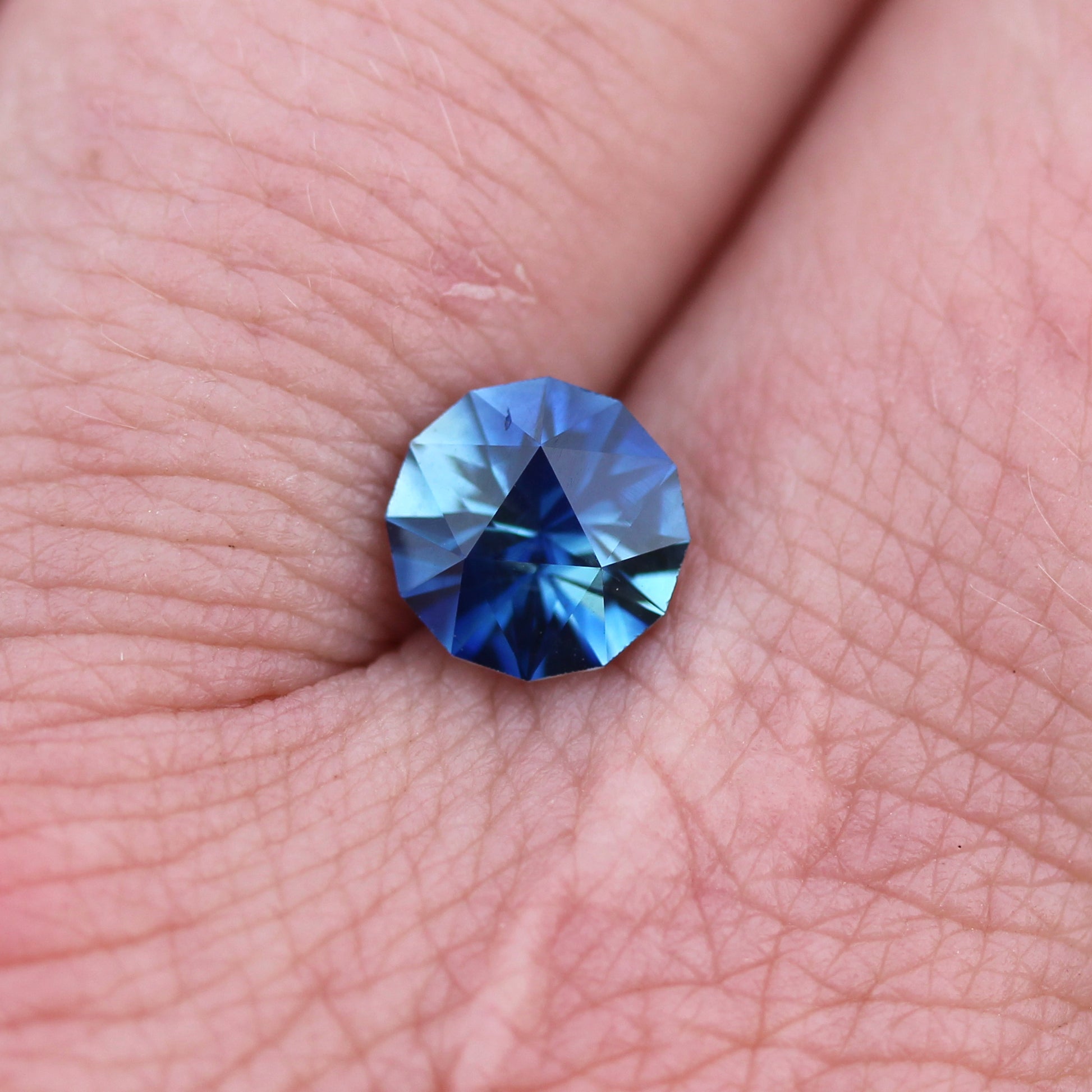 One of the best cut Tasmanian stones in my collection. This stone has stunning and interesting colour with a real bow tie effect of rich blue and lighter yellowy blue. There are some minor girdle chips as seen in the image that are not visible to the naked eye and a very small surface issue on the crown. Neither of these effect the beauty of this stone at all - it is stunning.