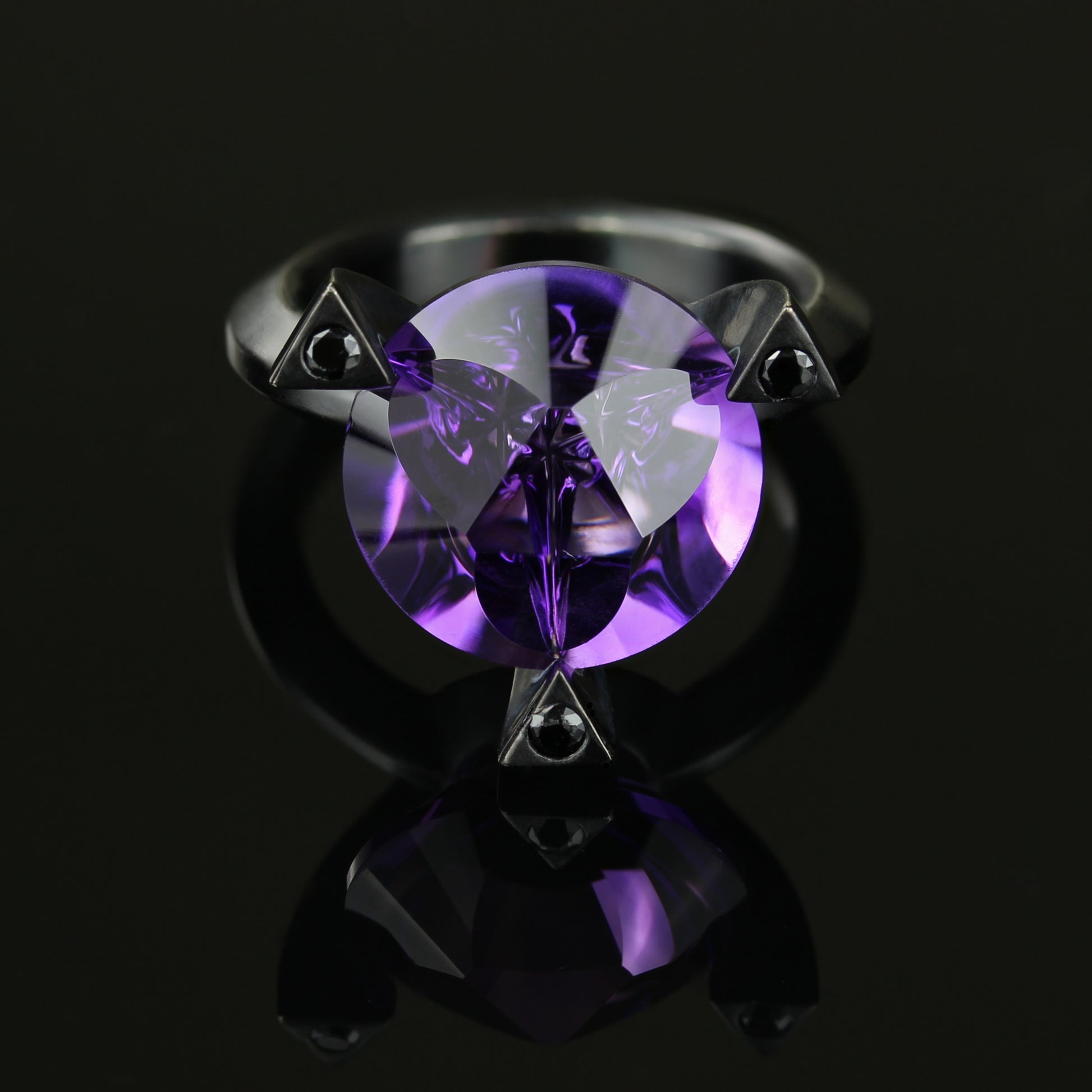 "Tri Forge" Amethyst and Black Spinel ring